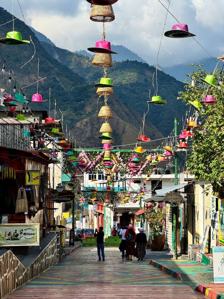 At one moment in time, I’m sitting at a restaurant with the view of Lake Atitlan and I’m enjoying a delicious seafood meal, occasionally chatting with the kind and energetic server. I have been here for over two hours, and he has not bothered me or nudged me to leave once (a sweet luxury I have rarely been able to enjoy in the US thanks to the set-up of the hospitality industry there). At another moment I am asking the lady from a local bakery what is a must-try pastry in Antigua. She smiles when I moan as I bite into the besito con jamon y queso that she recommends with pride. Señora Graziella, my host lady at San Juan La Laguna, shares a list of blessings with me before I depart their humble house in this captivating pueblo on the Atitlan Lake shore. In the same pueblo, by pure coincidence I meet Rosa, a guide at a small cultural house that enthusiastically retells stories of the Mayan women in this area. As I leave the house, she hands me a piece of a Mayan plant that is supposed to heal and protect energy, and she sends me off with a hug and love that I can feel deeply.